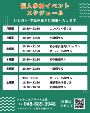 上尾店では2/2(月)より一部個人参加イベントを変更し開催していきます。