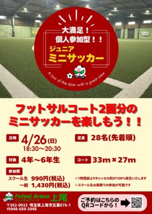 この度フットサルアリーナ上尾では、ジュニア向けの新イベントとして