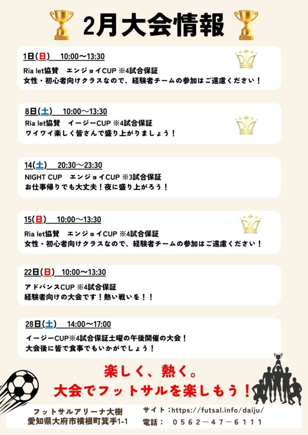 2月の大会日程です!!
