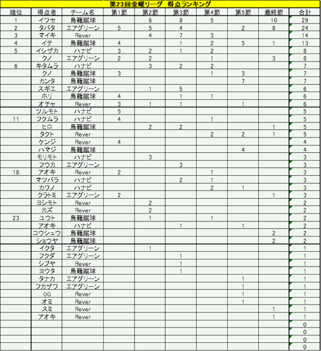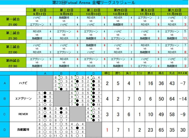 【11月28日(金)】 第23回金曜リーグ最終節