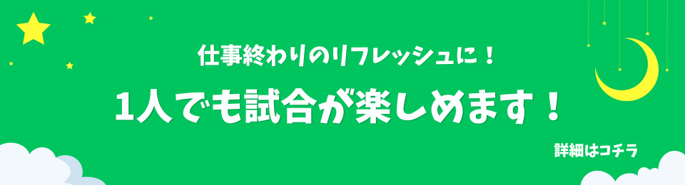 週間スケジュール 1月24日(土) 【18:00 - 20:00】個サル エンジョイ個サル 前日までの予約で会員参加費1,000円 ※当日会員価格1,400円 1月25日(日) 【09:00 - 10:30】レッスン 親子フットサル教室 会員参加費1,650円(年中~小学生親子)【11:00 - 13:00】個サル エンジョイ個サル 前日までの予約で会員参加費1,000円【18:00 - 20:00】個サル 初中級個サル 前日までの予約で会員参加費1,000円 1月26日(月) 1月27日(火) 【20:00 - 22:00】個サル 中級個サル 前日までの予約で会員参加費1,000円 1月28日(水) 【20:00 - 21:00】レッスン 超初心者フットサル入門教室 会員参加費800円 ※初心者同伴で経験者参加OK 1月29日(木) 1月30日(金) 【20:00 - 22:00】個サル エンジョイ個サル 前日までの予約で会員参加費1,000円 前週 今週