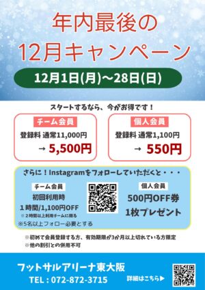 非会員の方が12月中に個サルまたはレッスンに参加された場合、