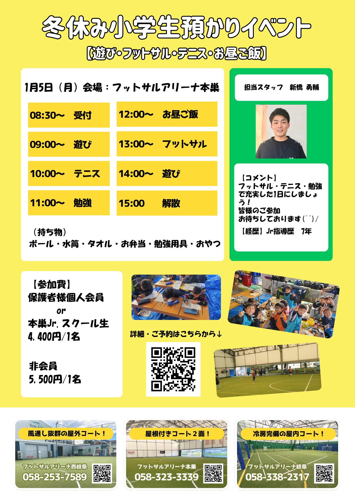 1月5日(月)は朝から夕方までお子様お預かりします!