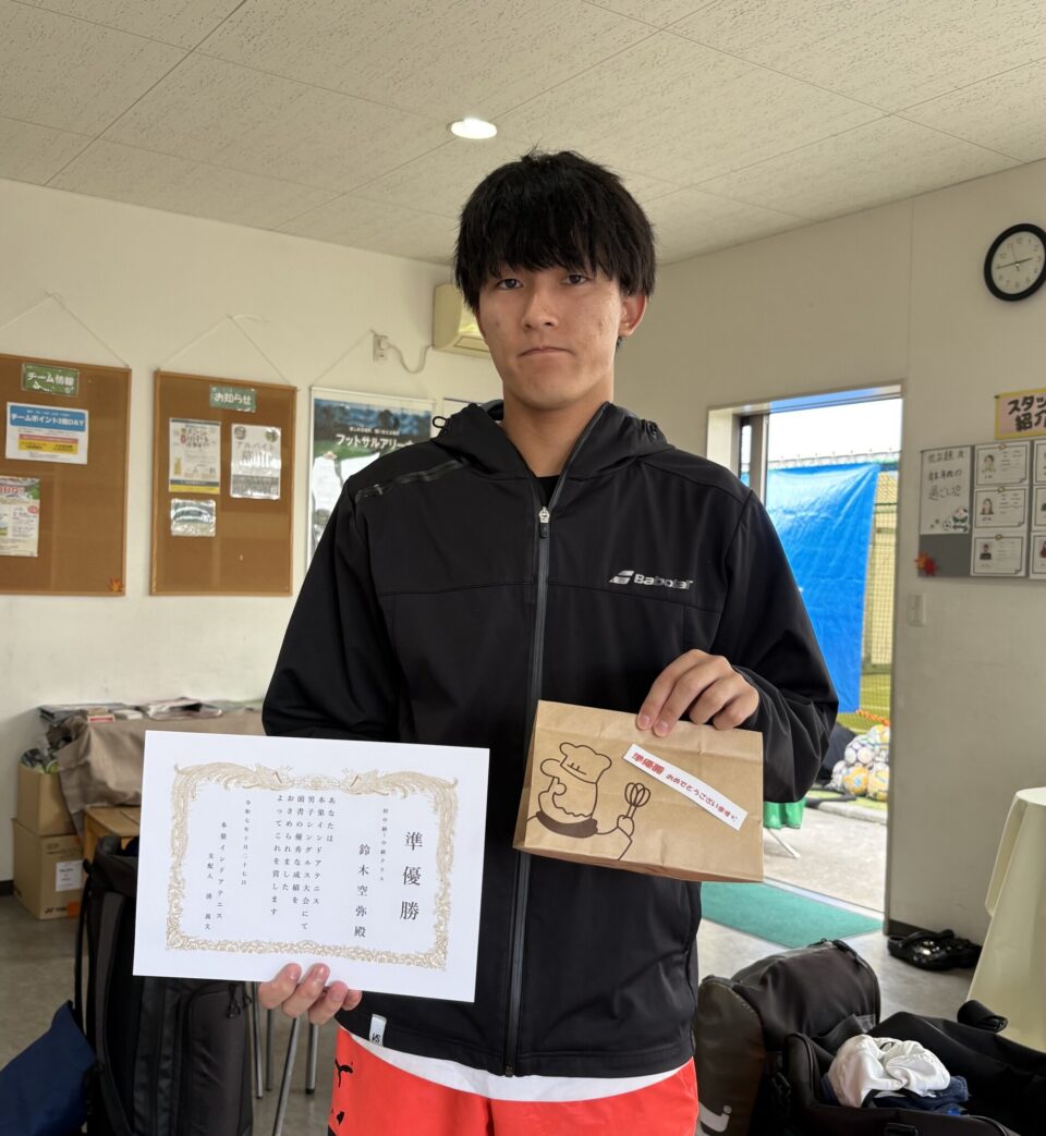 【10月27日(月)】 【テニス】男子シングルス大会🎾(初中級~中級) 優勝選手 優勝おめでとうございます!( 川瀧 様) 参加選手 準優勝おめでとうございます( 鈴木 様) またのお越しをお待ちしております(集合写真)