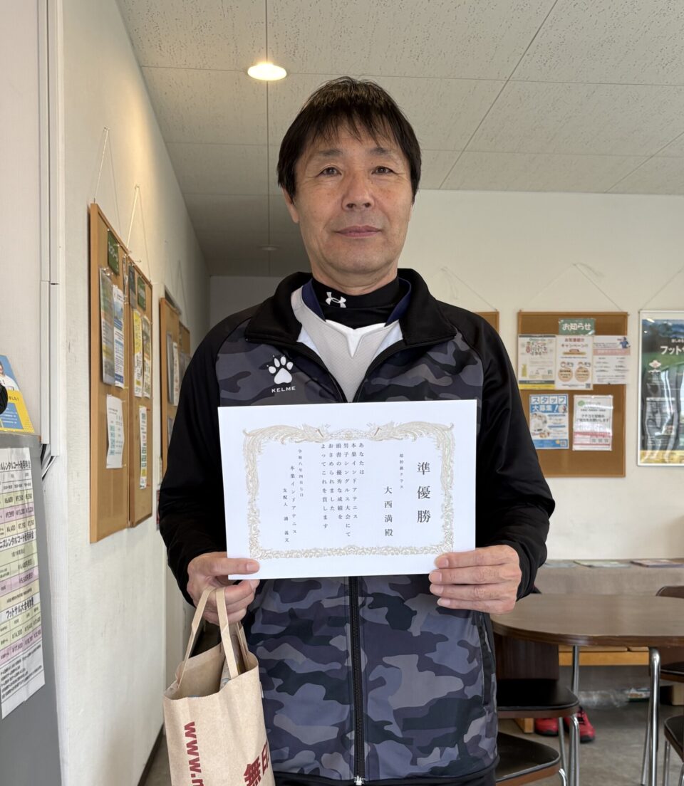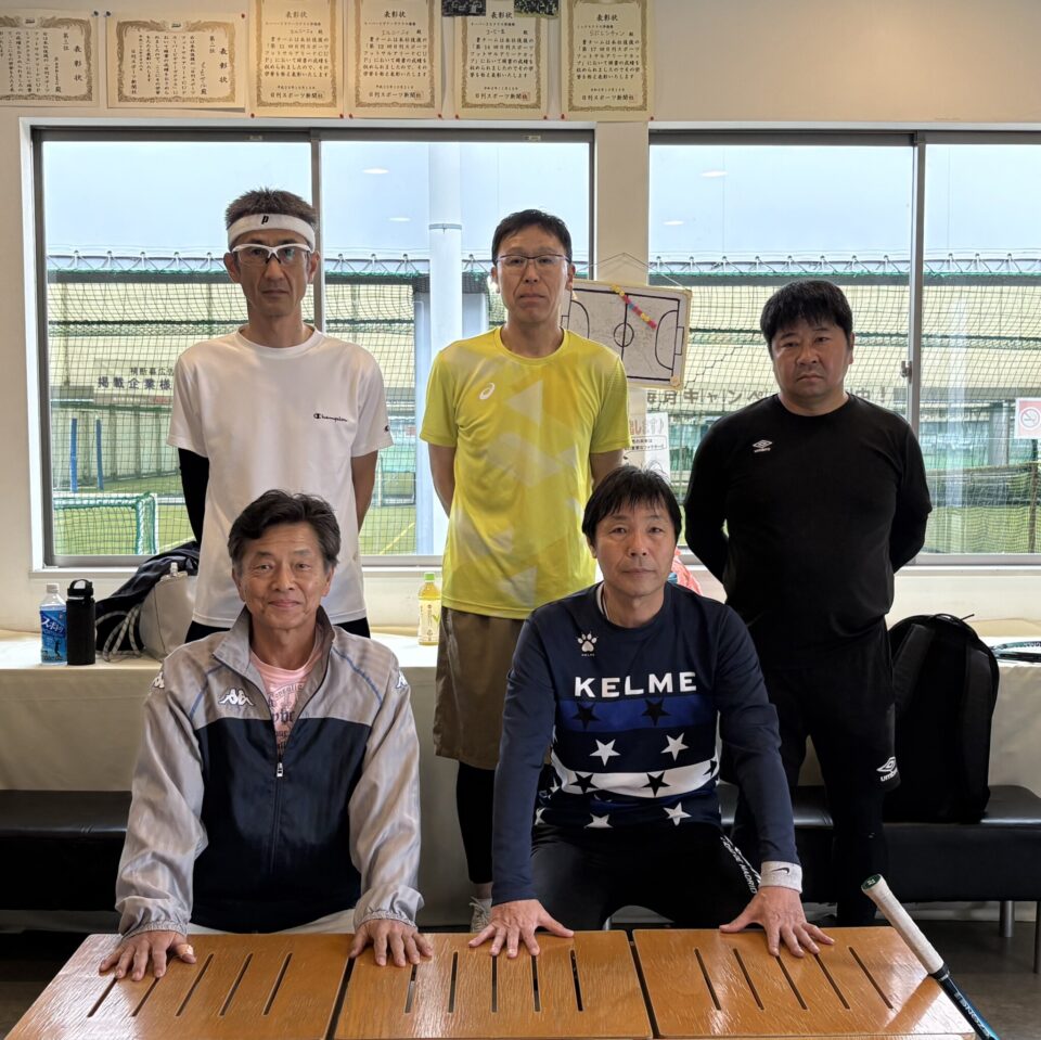 【4月7日(火)】 【テニス】男子シングルス大会🎾(超初級) 優勝選手 優勝おめでとうございます!(水野様) 参加選手 準優勝おめでとうございます!(大西様) またのお越しをお待ちしております(集合写真)