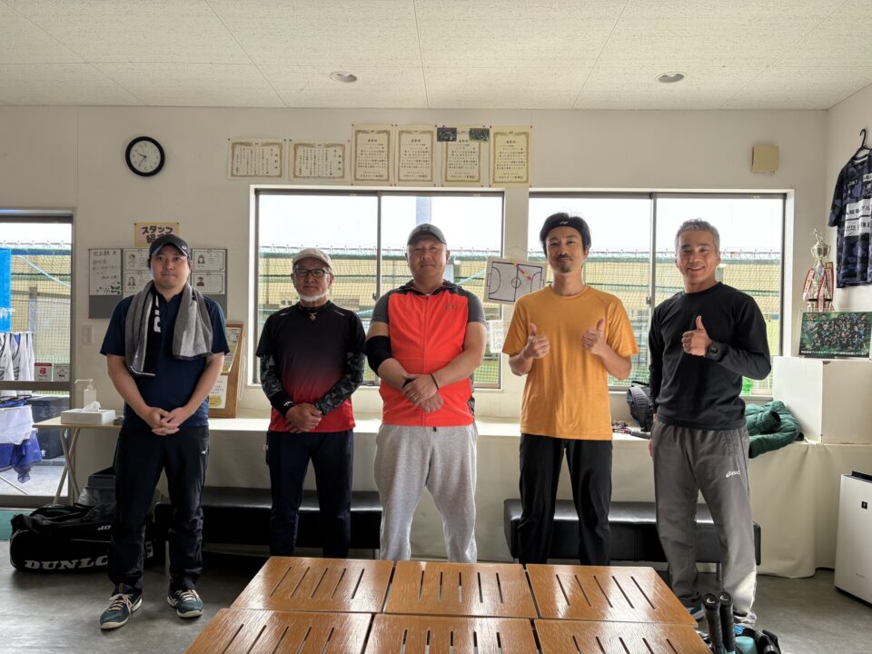 【3月24日(火)】 【テニス】男子シングルス大会🎾(初級) 優勝選手 優勝おめでとうございます!(石原様) 参加選手 準優勝おめでとうございます!(神山様) またのお越しをお待ちしております(集合写真)