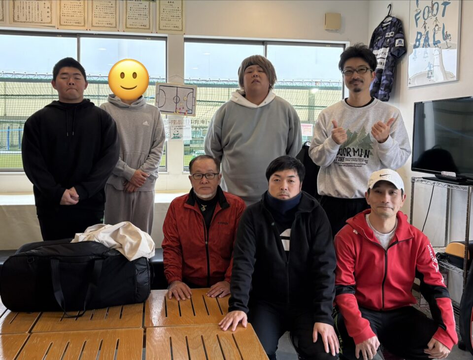 【1月27日(火)】 【テニス】男子シングルス大会🎾(初中級) 優勝選手 優勝おめでとうございます!(K様) 参加選手 準優勝おめでとうございます!(花井様)お名前掲載辞退 またのお越しをお待ちしております(集合写真)
