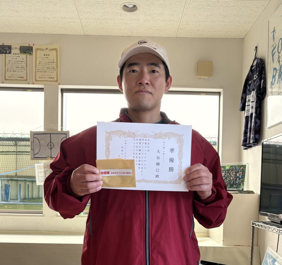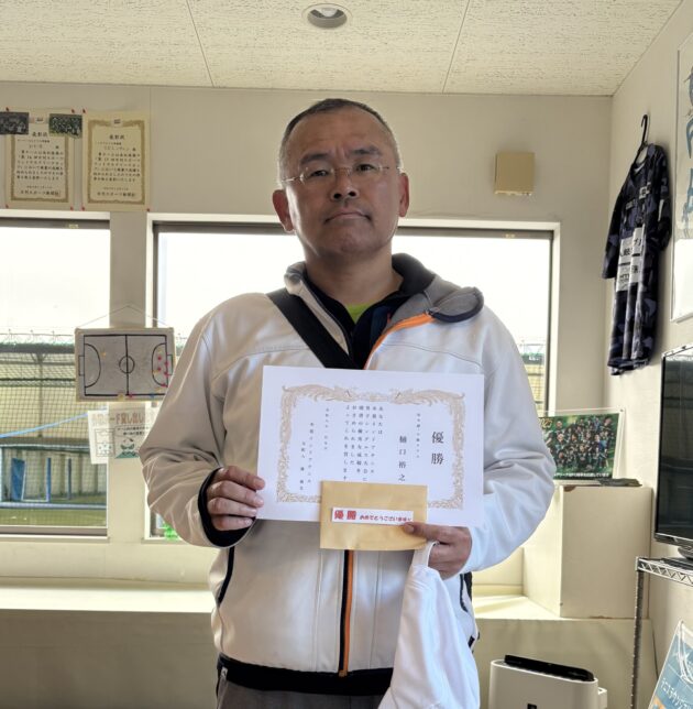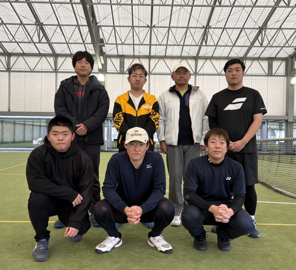 【1月9日(金)】 【テニス】男子シングルス大会🎾(初中級~中級) 優勝選手 優勝おめでとうございます!(樋口様) 参加選手 準優勝おめでとうございます!(大谷様) またのお越しをお待ちしております(集合写真)