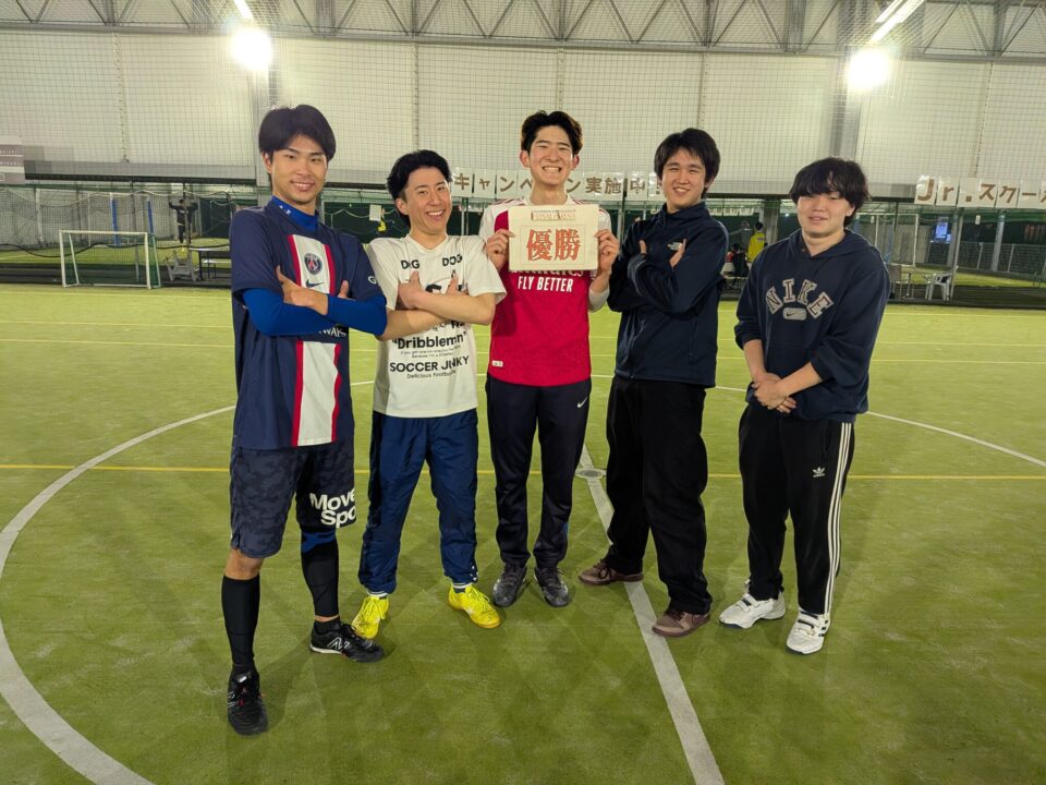 【2月27日(金)】 NIGHT CUP エンジョイクラス 40歳以上ゴール2点 優勝チーム るなたん① チーム名 A B C 勝点 得失 順位 A るなたん① – × 3-4 ○ 6-1 9 +10 1 ○ 7-4 ○ 5-2 B F’s倶楽部 〇 4-3 – 〇 7-0 9 +8 2 × 4-7 〇 4-1 C るなたん② × 1-6 × 0-7 – 0 -18 3 × 2-5 × 1-4 優勝コメント やってやったぞ! 参加チーム るなたん① F`s倶楽部 るなたん②
