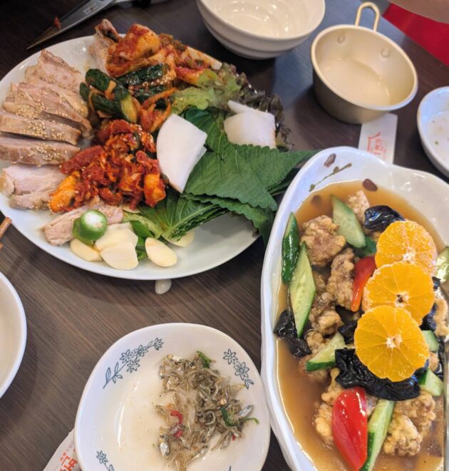 ポッサムは肉厚で角煮のような食べ応えがあり、韓国酢豚はボリューム満点でした!